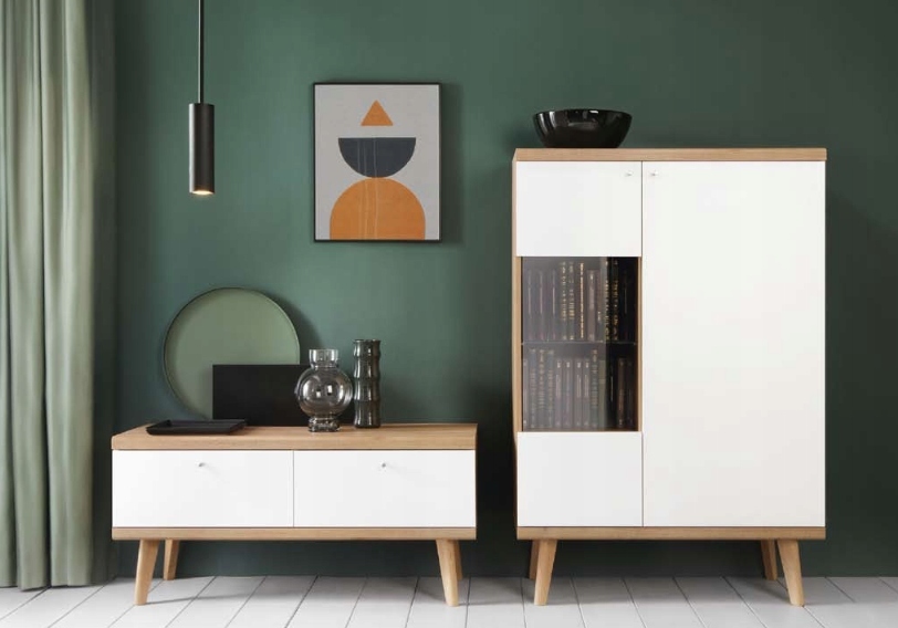 Kolorystyka: Dąb riviera (korpus + listwa) + biały(front)