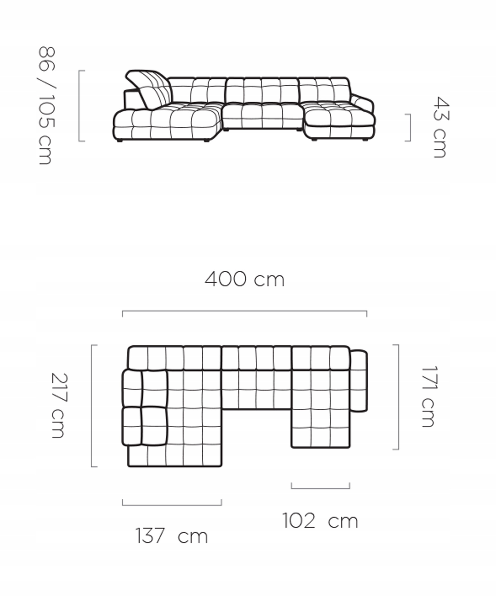 - Głębokość: 171 / 217 cm