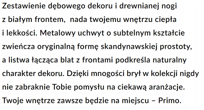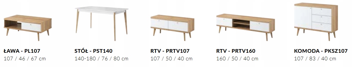 Kolorystyka: Dąb riviera (korpus + listwa) + biały(front)