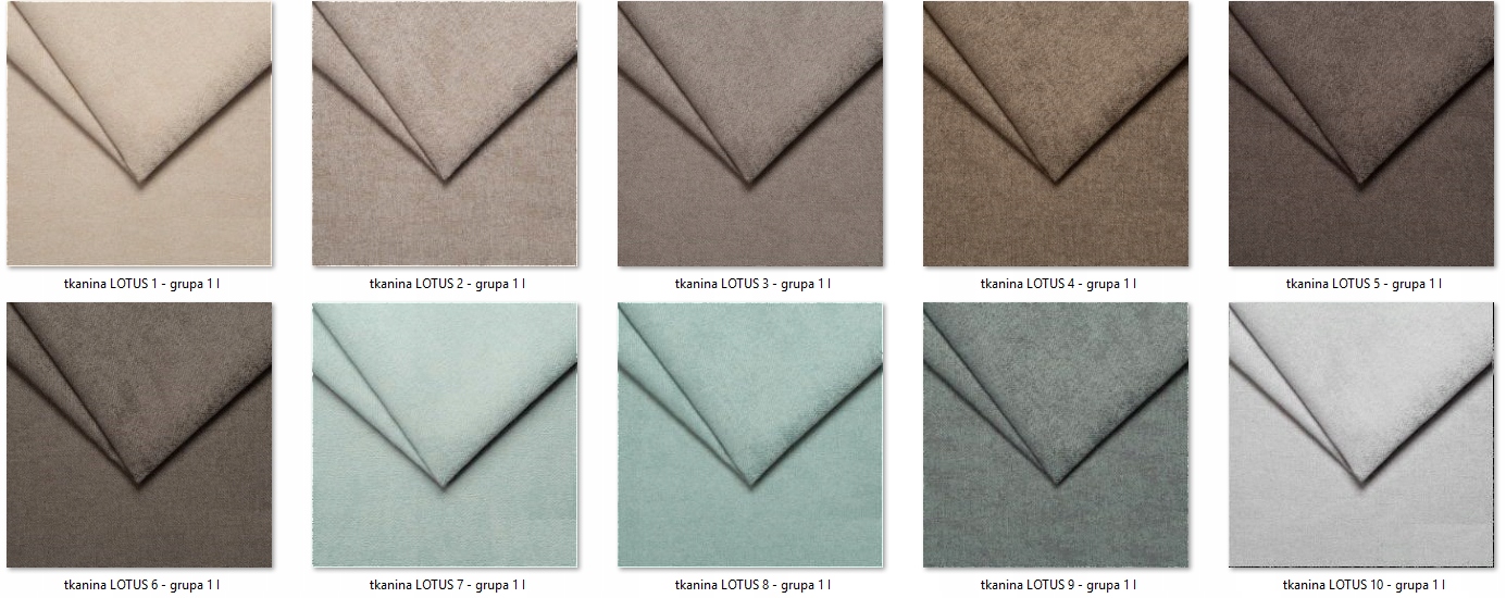 Lotus to materiały obiciowe z serii plecionek o drobnym splocie. Tkanina tapicerska Lotus w 100% wykonana jest z Polyestru oraz odznacza się wysoką gramaturą, bo wynosi 330 g/m2. Posiada dobre parametry ścieralności.