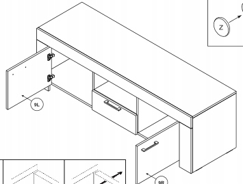 Zestaw stolik RTV SRTV155 + półka P155 wymiary: