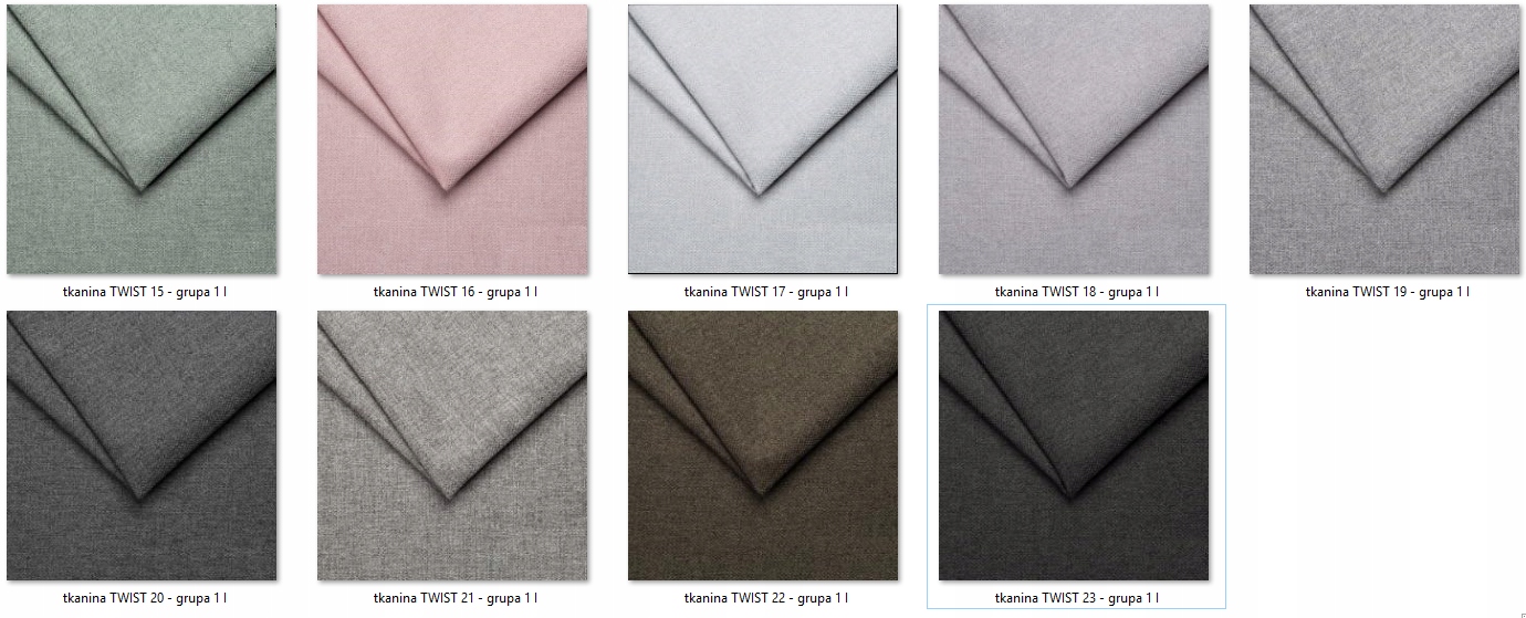 TWIST to tkaniny charakteryzujące się drobnym splotem, o delikatnie wyczuwalnej w dotyku fakturze.